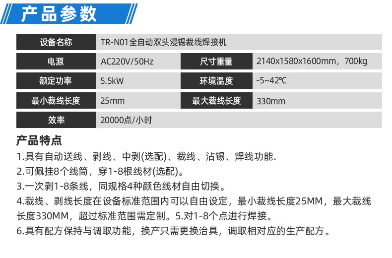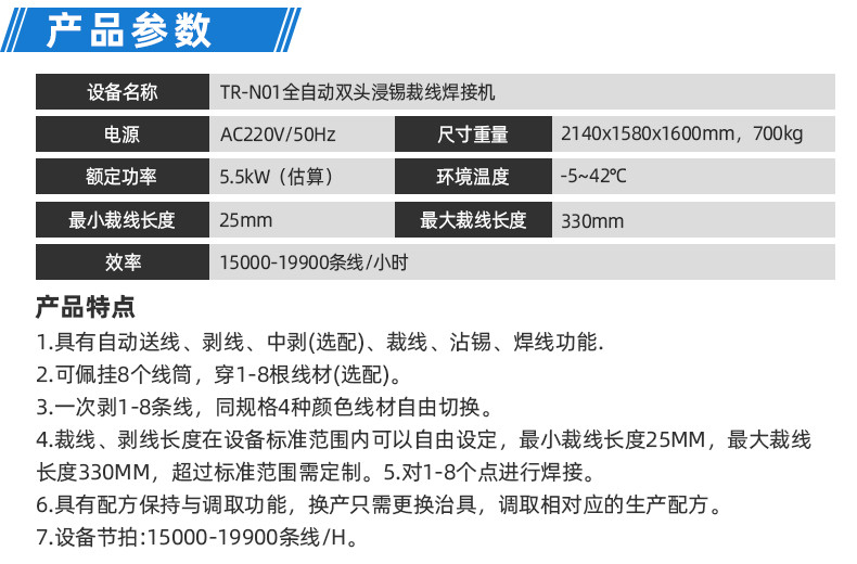 1.具有自动送线、剥线、中剥(选配)、裁线、沾锡、焊线功能.