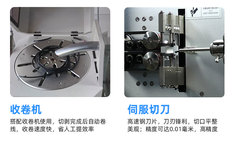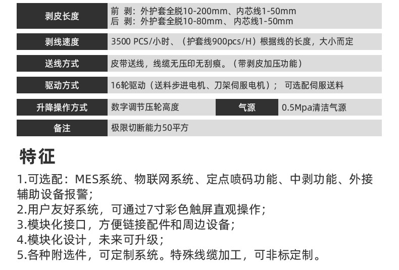 功能:①单芯线、多芯电缆线、屏蔽电缆,全自动定长切断、剥皮;